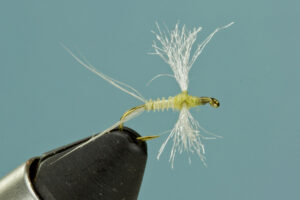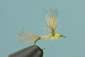 All said with no Latin, but how do we use the information. Here is a typical set of flies selected for each stage of a life cycle. The patterns and colors are chosen with PMDs in mind, but comparable sets of flies can be put together for any specific insect. Nymphs or larva are typically found near the bottom. Weighted nymph patterns are effective for this stage and may include bead heads such as the ARF Tung-Syn PT or older patterns such as the Pheasant Tail with either a bead head or a weighted underbody. For the emerger stage I lean toward soft hackle unweighted (or lightly weighted) versions of these same patterns. I also have great success with flies designed specifically to be soft hackles such as the PMD Soft Hackle. I divide cripples into two categories. The first category would be flies that run into problems before fully reaching the surface. My favorite example is The Quigley Cripple followed by a soft hackle fished in or just below the film. For insects that have made their way through the surface film but are stuck at this final critical stage I prefer flies like Klinkhammers, Quigley Hackle Stackers and the Sparkle Dun. Adults may be imitated by many well know patterns. One of my favorites is a Comparadun, but many flies such as the Adams or a Quill Body Dun are effective. I don’t tie a specific egg laying pattern, trusting instead the same soft hackles I use for emergers or a winged wet fly. Finally there are spinners or drowned adults. Soft hackle patterns again produce well fished either just below or in the surface film. Other patterns like the simple Antron Wing Spinner produce well, but may be hard to see. A favorite pattern of mine that is easier to see is the U-Can-C It Spinner.