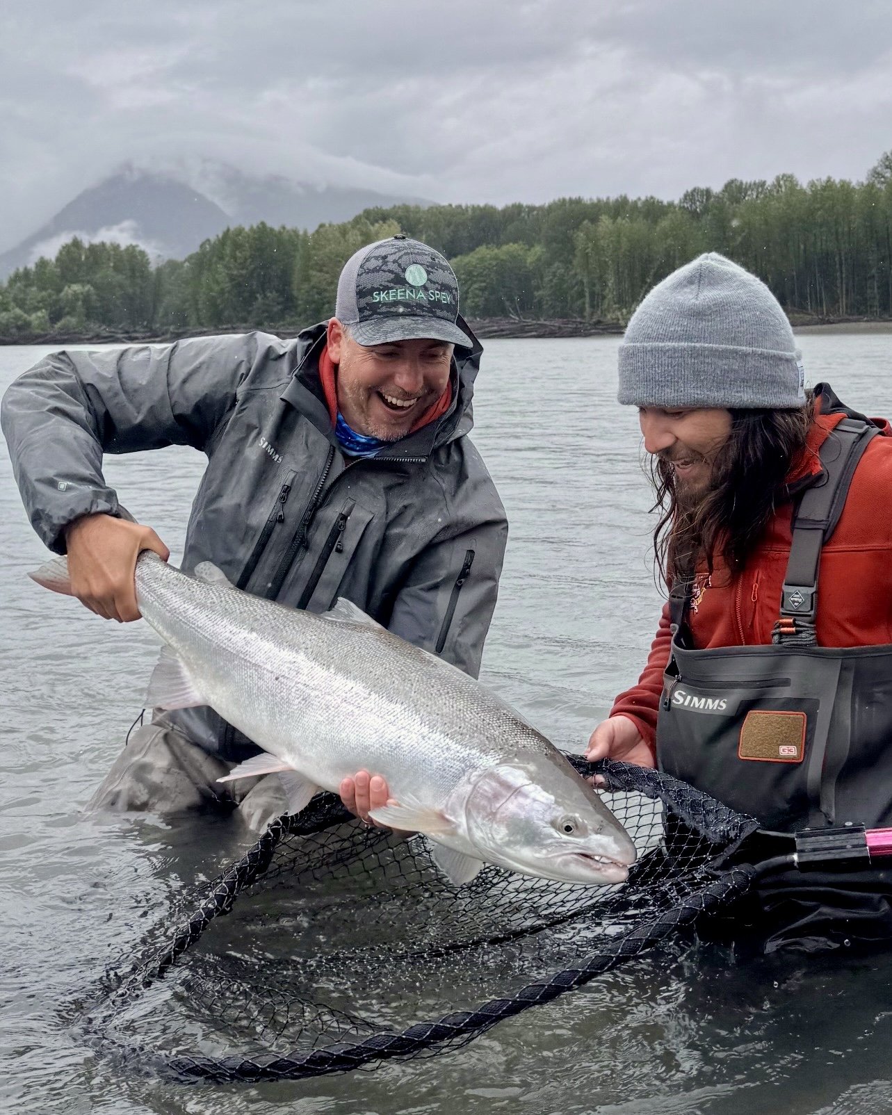 At Skeena Spey, here on the lower river, we’re trying to catch a good one – quality over quantity. We want to catch those big fish when they are silver. We want to catch them before they’ve been caught by other anglers. We believe that our flies are some of the first these fish have ever seen. We’re catching them in shallow water, which is a place that they naturally want to be.